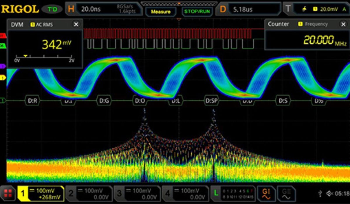 The RIGOL MSO5000 Series Oscilloscope comes with a Bode plot function, which intuitively shows test curve and data. This can help engineers quickly determine system stability by analyzing parameters such as phase margin and gain margin.