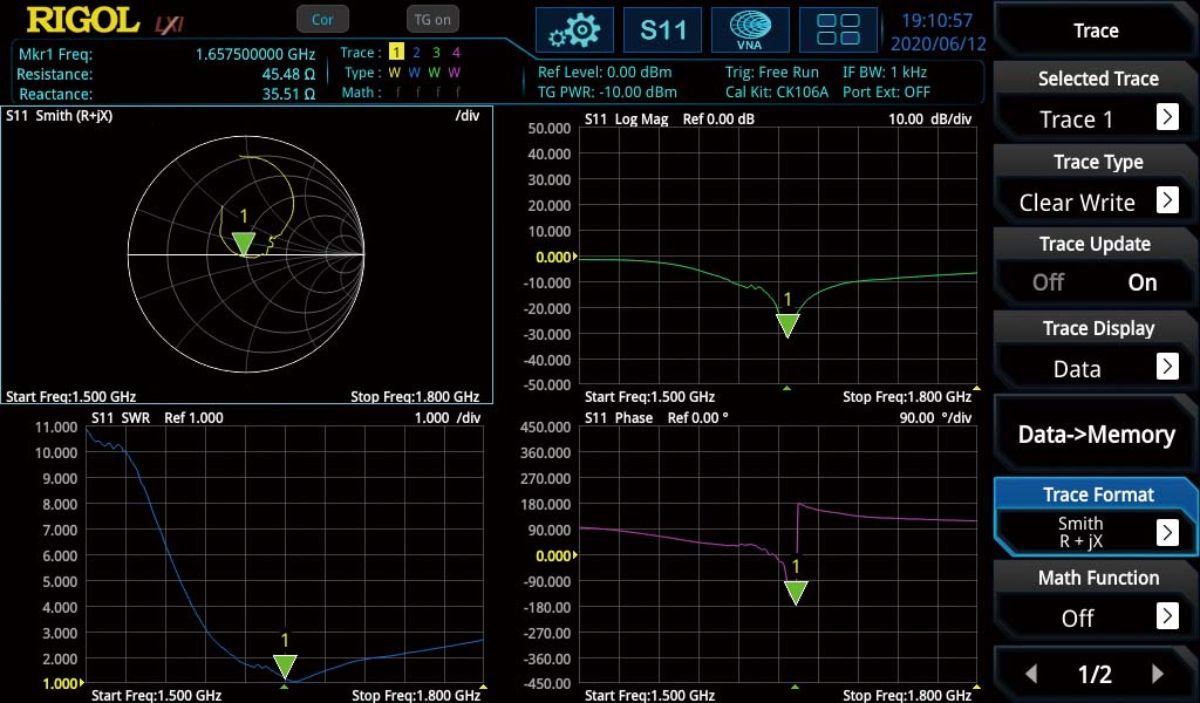 The VNA mode can measure the S11, S21 of components and circuit networks and locate fault points. It can more accurately characterize the network characteristics of the device under test through various displays such as Smith charts and polar coordinates.